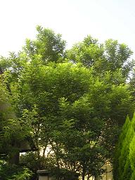 愉悠舎が建ったとき、このニセアカシアはまだ小さかった。それがいつの間にか10メートルほどに伸びている。この暑い時期にも新しい葉が生まれている。写真からも薄い黄緑色をした新緑が確認できる。