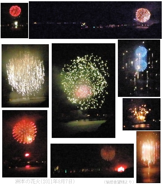 7日の日曜日、淡路島最大のイベント?である「洲本の花火大会」を、我が丸太小屋から見せてもらった。