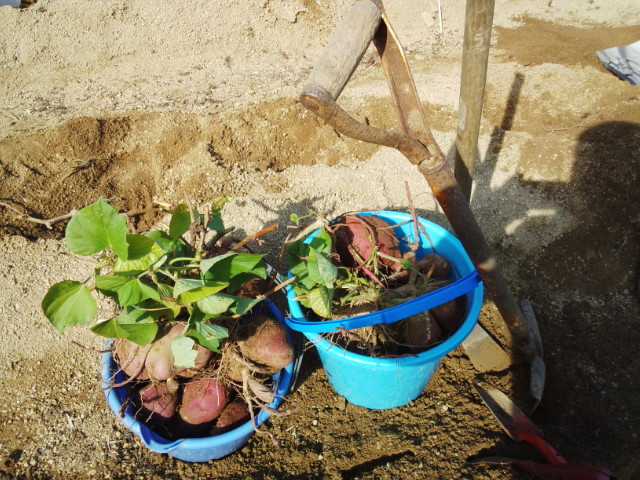 今年の芋は昨年の小粒な出来ばえと違って、豊作で大作と言えるだろう。ヨカッタ、ヨカッタ!