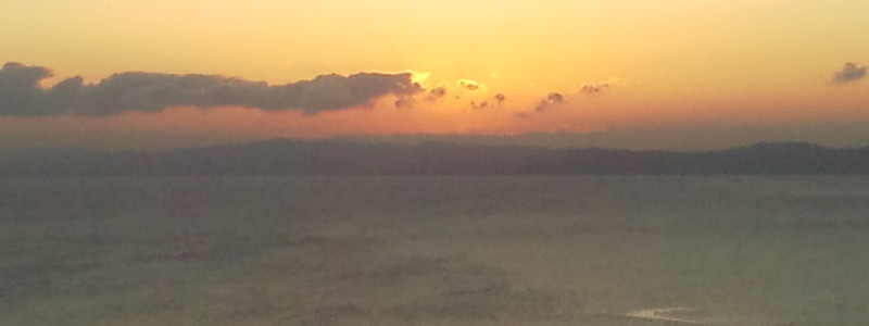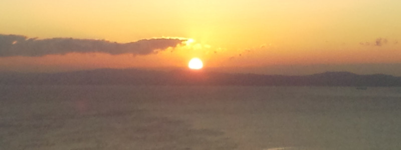 愉悠舎望楼から明けゆく大阪湾を俯瞰。