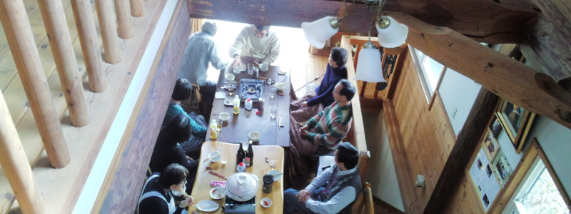 外は寒いが小屋の中に射す陽だまりに温みを感じる日中、例によって神戸方面から気の置けない連中がやってきた。