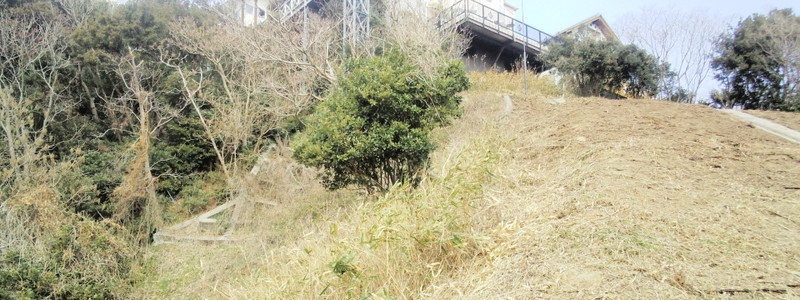 望楼下の法面(のりめん)とその横の斜面が管理会社の手によって刈り込まれた。