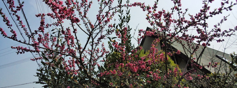 サクラに負けてはならぬと、わが庭のモモも咲き誇る。