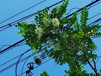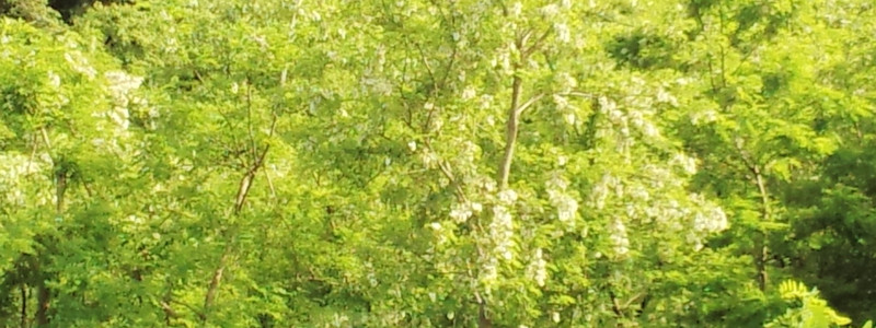 激しかった夜半の雨あがり、のぞかせた青空に立つアカシアの木に、白い蝶の形をした花を見る。
