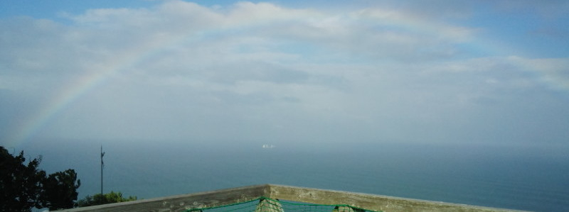 「 台風の目」に入ると青空が見える。今まで幾度か「台風の目」の上に広がる青空を見たことはあるが、虹を見るのは始めてである。