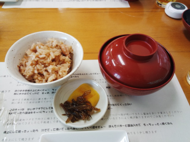 あわび1枚 サザエ1個 大アサリ2個 ヒオウギ貝1枚 野菜 本日の一品 たこめし