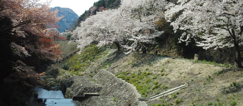 諭鶴羽山系から流れ落ちた水がダムへ注ぐ途中の河畔