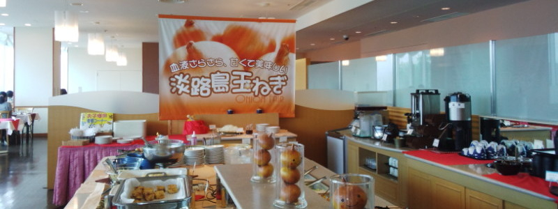 ランチビュッフェは淡路の食材を使った料理もあり、その中心に「淡路たまねぎ」がある。
