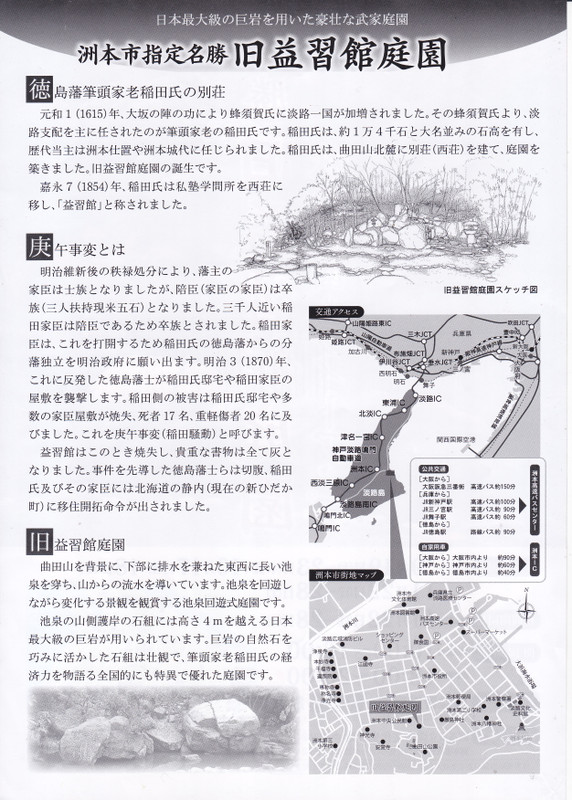 映画・「北の零年」や船山馨の小説・「お登勢」でなじみの庚午事変(稲田騒動)により焼失した稲田氏の私塾学問所「益習館」の庭園が公開されている。