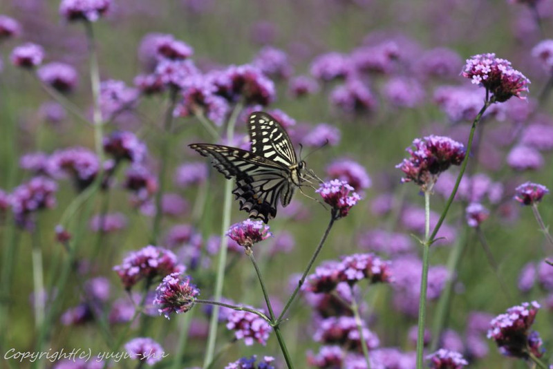 「あわじ花さじき」に6月初めから7月中頃まで咲く筈のバーベナがまだ見ごろ、向日葵も。