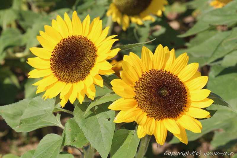 コスモスの可憐な花のあいだをぬって、「菜の花」、「ひまわり」たちも生きている。