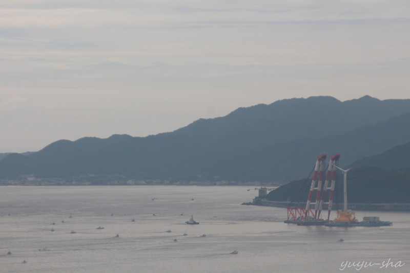 何ごとかと思い、調べてみると風力発電の組立工事みたいだ。