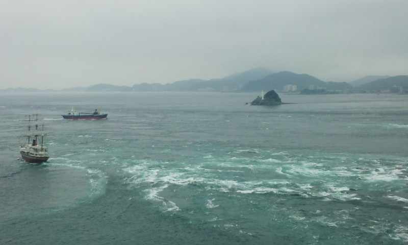 その約6時間後には潮位が逆転し、再び海面に落差ができます。 この干満の差が、日に4回繰り返され巨大な渦を巻くのです。(四国遍路へのいざない