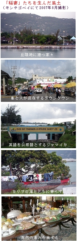 もう一つあげれば、豊かな太陽の光と霧や雨に恵まれたカリブの気候、起伏の多い生活空間、青く澄んだカリブの海、そして反抗の音楽レゲエ、これらの気候と風土が世界の頂点に君臨するスプリンターをはぐくむ土壌になったのではなかろうか。