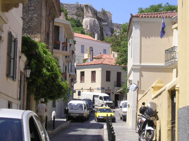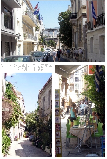 パルテノン神殿のあるアクロポリスの丘を臨めるプラカ地区、ここは中世の面影が色濃く現代に息づいている。2007年7月12日アテネのプラカ地区を訪ねた。