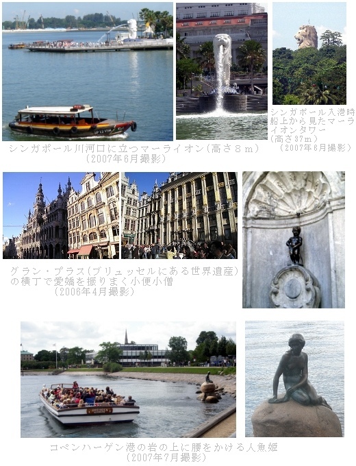 一般的に言われているそれは、シンガポールの「マーライオン」、ブリュッセルの「小便小僧」、そしてコペンハーゲンの「人魚姫」のようだ。