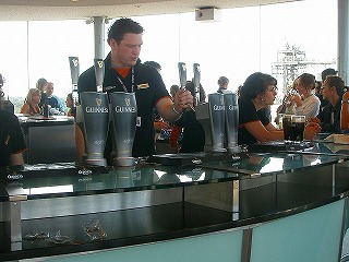 最上階、7階は「Gravity Bar」、ここに来ると1パイント(568ml)のビールが無料でふるまわれる。ここからダブリン市内が一望できる。高層建築のない緑の多い360度の風景を眺めていると、辛酸をなめた歴史の中にあっても、豊饒な暮らしを紡いできた、アイリッシュの誇りが伝わってくる。