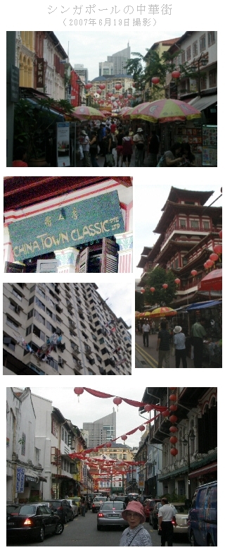 40年ほど前まで、シンガポールの中心部のほとんどはチャイナタウンであった。シンガポールにチャイナタウンができ始めたのは1819年にイギリスの植民地になってからで、福建省・広東省などの中国南部からやって来た人たちがチャイナタウンを形成していった。