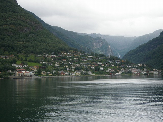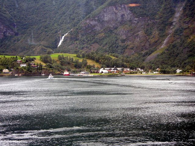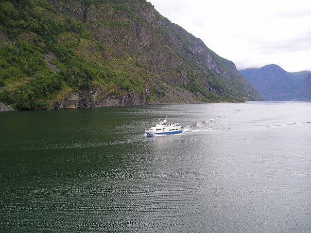 ソグネフィヨルドを最後まで突き進まず、途中で枝分かれしている支流のアウルランフィヨルドに入る。この奥にはフラム(flam)村が在り、ここは山岳鉄道の華、フラム鉄道の発着点になっている。