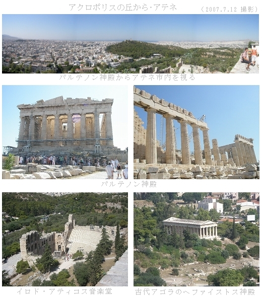 暑い夏の日にアクロポリスの丘を訪ねた。観光シーズンのせいか、それとも年中こうなのか、パルテノン神殿の周りはヒトヒトで溢れていた。世界中の人々が狭いアクロポリスの丘に押しかけ、様々な人種の顔と言語が交差している。目立つのが中国系の人で、最近世界各地の観光地に中国の観光客が増えているのが実感として受け止めることができる。とある土産物店で日本人が店の人に「チャイナ?」と聞かれていた。彼らは商売の相手として中国人か日本人かは重要な要素なのであろう。日本人と分かれば「ぼったくり」にかかる。日本からの観光客は世界の人々に舐められている。だからと言って、ここアテネがそうだと言うのではない。