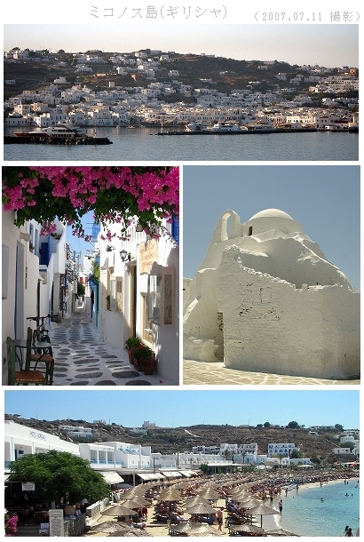 エーゲ海に浮かぶ島々の中で日本の女性に最も人気があると言われているのがミコノス島(Miconos)である。面積は約100 km²と我らが淡路島(592km²)の1/6ほどの小さな島に、世界中から人々がやって来る。