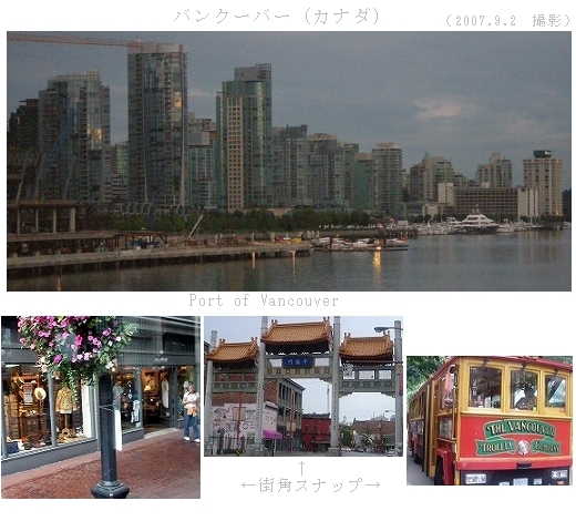 Street)や、⑭番スタンレーパーク(Stanley Park)で降り、通りや公園内を散策した。北米で最大規模の23番のチャイナタウン(Chinatown)はバスの中から「異国情緒?」溢れる風景と、そこで暮らす人々の生活を垣間見る。