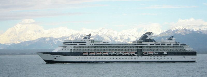 <途中、クルーズ船・セレブリティ・サミットとランデブー遊覧> ↓