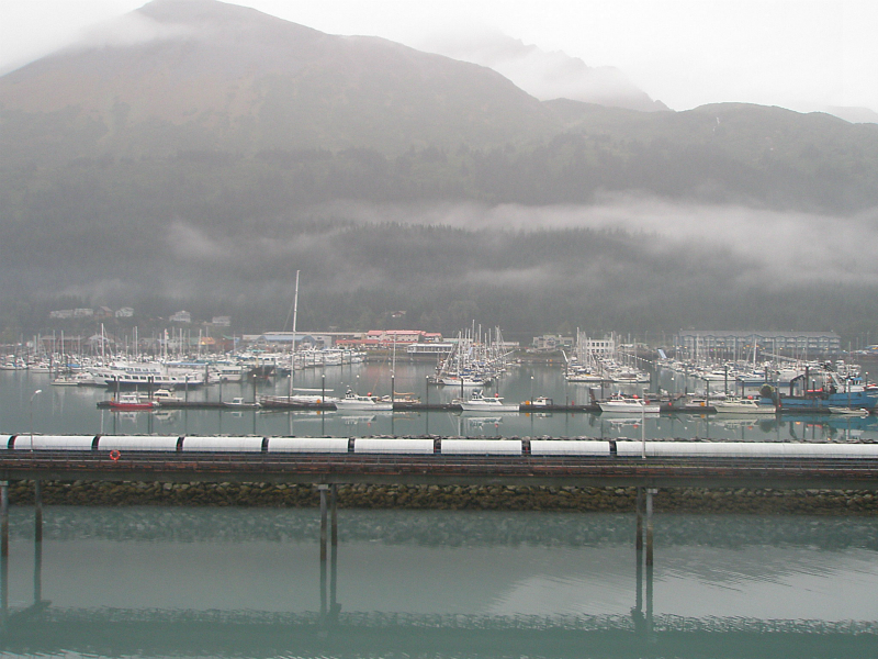 この日の氷河クルージングはスワードで終わった。スワードはアラスカ鉄道の南の終着駅で、鉄路はアンカレッジを通りフェアバンクスへと続く。 9月のスワードは冷える。