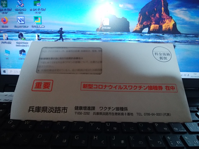 先週の日曜日(18日)神戸から帰宅すると「新型コロナワクチン接種券」が届いていた。