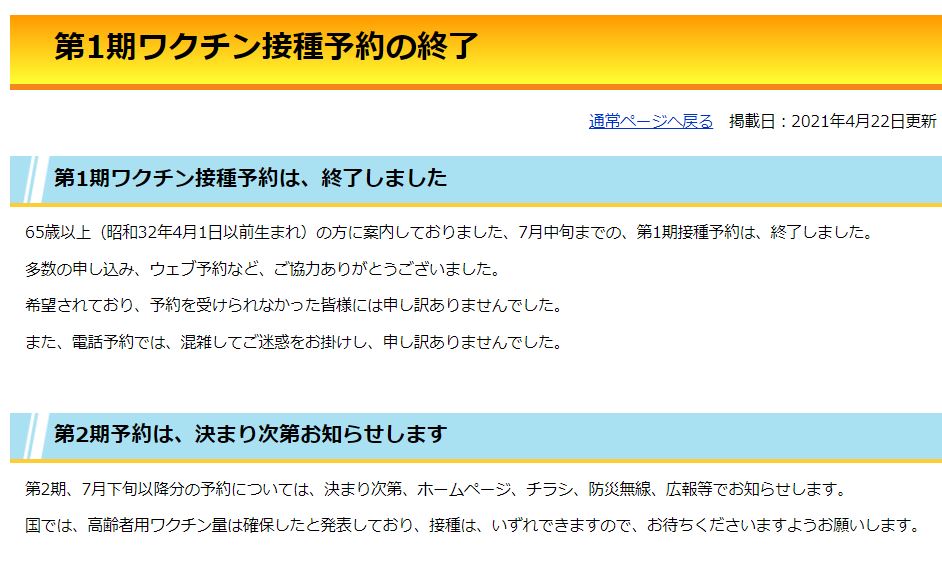 22日の淡路市のホームページには早くも予約終了の公報。(下記)