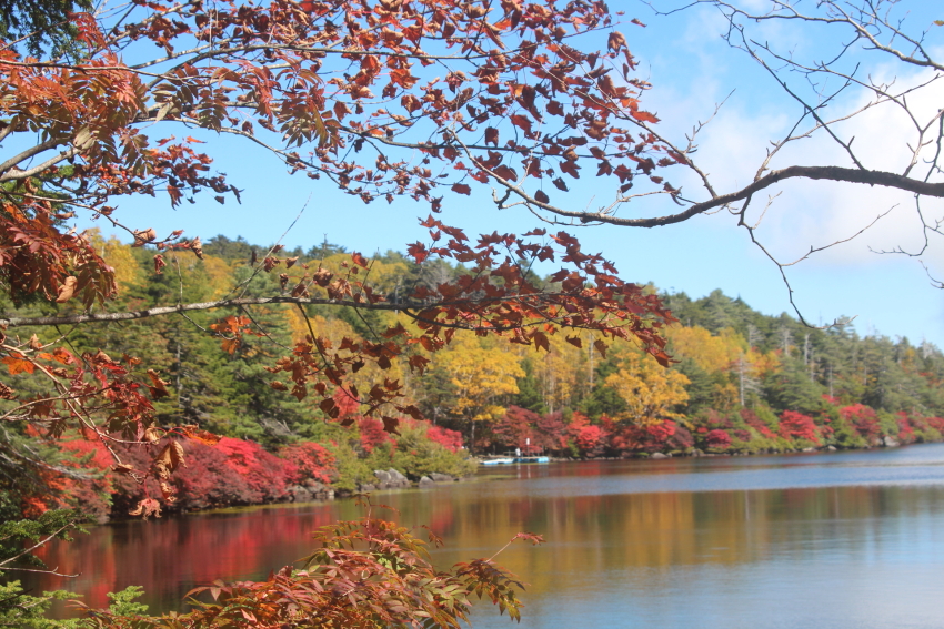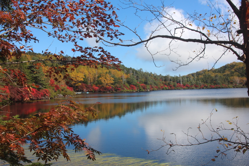 北八ヶ岳にある白駒池(標高2115m)はもう秋色。(10月2日)昨日、関西は夏日。一足早い秋いろを・・・。