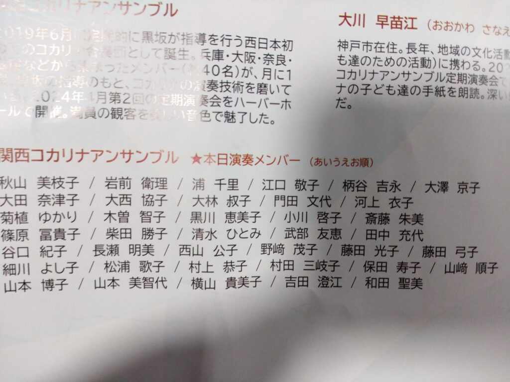 6月28日(土)、長田区にある「ピフレホール」にて黒坂黒太郎、矢口周美(かねみ)、新倉一梓(かずさ)、ほかによる「コカリナとうた、朗読のコンサート」が開催された。